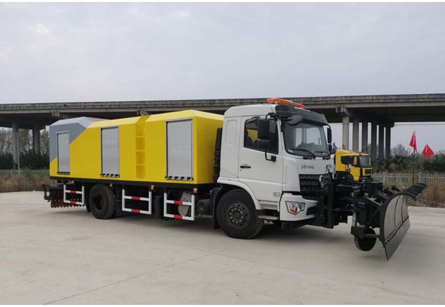 | 上裝配置 | 前置推雪鏟、中置破冰輥+除冰鏟、后置掃雪滾刷,150Kw副發(fā)動機(jī),封閉式廂體結(jié)構(gòu)帶中部爬梯,左右各 3 個鋁合金卷簾門,尾部配備雙大箭頭 LED 指示燈+LED 顯示屏,叁段式獨(dú)立避障,每段都具有自動上彈、自動復(fù)位的避障功能,具有浮動和隨路面仿形功能。除雪鏟鏟刃和破冰輥刀片高強(qiáng)度耐磨合金鋼,硬度 50-55HR。后置除雪滾刷,用聚丙烯刷毛和強(qiáng)性鋼絲混合制成。 | ||