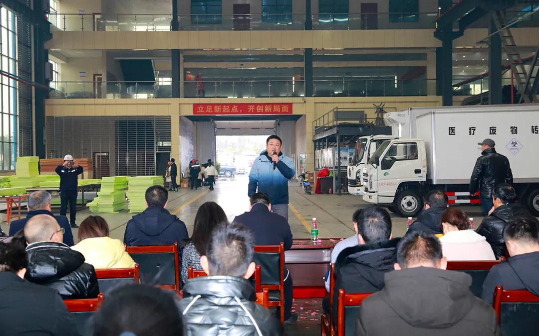3月2日,程力特種冷鏈車專業(yè)廠花費(fèi)數(shù)百萬(wàn)元引進(jìn)的自動(dòng)化廂式車板材切割復(fù)合生產(chǎn)線正式剪彩投入使用,集團(tuán)公司總經(jīng)理程阿羅出席剪彩儀式,并發(fā)表講話。