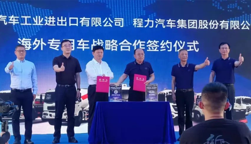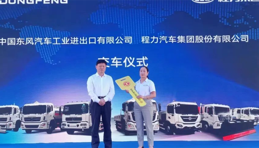 5月27日上午,陽(yáng)光明媚晴空萬(wàn)里,在風(fēng)景如畫花園式的程力新廠底盤大樓廣場(chǎng)上,程力汽車集團(tuán)與中國(guó)東風(fēng)汽車工業(yè)進(jìn)出口有限公司,聯(lián)袂舉行了一場(chǎng)隆重而又別開生面的“深耕專用車,攜手共出海”商用車新產(chǎn)品大型推薦會(huì)。