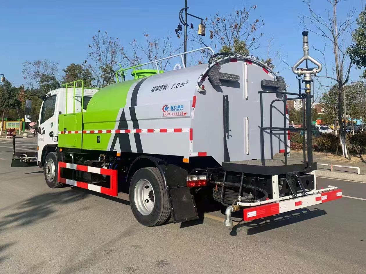 上裝配置 ①、采用雙發動機、雙水泵清洗車,具有獨立的高、低壓兩套清洗水路系統。 ②、采用副發動機驅動高壓泵及工作裝置液壓系統,產生高壓水,強力去污,高效節水,能將路面的陳舊污漬清洗干凈。低壓水路采用雙級葉輪離心泵,效率高,沖洗寬度大,射程遠。 ③、高、低壓水路系統,均采用電、液、氣集中控制。整車具有良好的人機操作界面,操作方便靈活,駕乘舒適。 ④、采用進口GTM高壓水泵,性能可靠,使用壽命長,確保清洗效果。進口噴嘴,噴射流水穩定,壓力損失小。遠射程水槍可用于輔助消防及清洗。 ⑤、噴霧系統可以噴霧降塵,調節空氣濕度。 ⑥、噴水架清洗寬度2.2-2.7米任意可調,當噴桿收縮時,可實現雙重水流強化清洗。 ⑦、左、右噴桿端安裝有警示燈。 ⑧、噴水架安裝有罩殼及橡膠檔板,工作時可以減少水霧及泥沙的飛濺。
